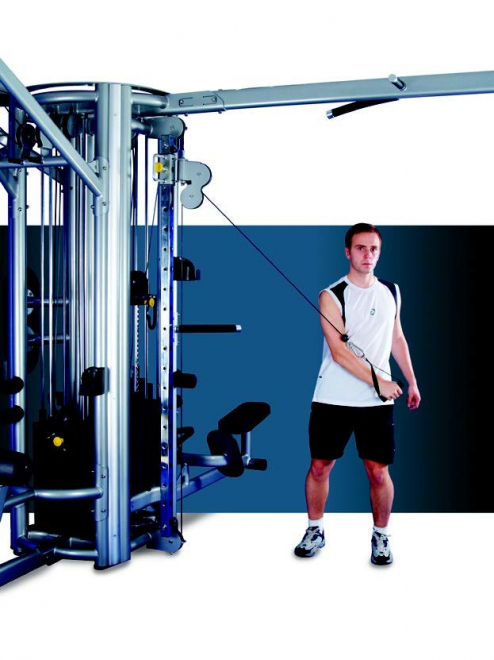 - Также имеет две с регулировкой высоты тяги (возможно выполнение махов ногами). 91 кг - вес одного стека.
