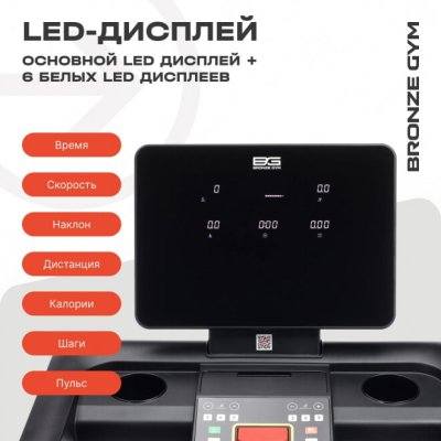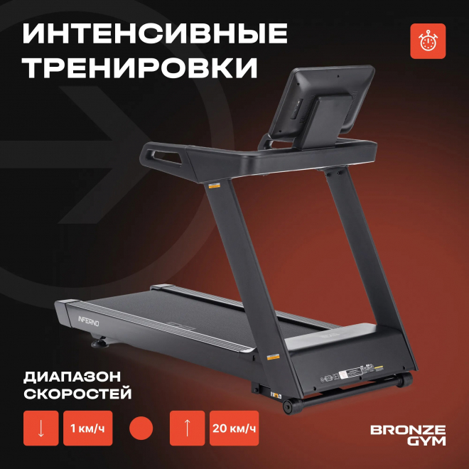 Беговая дорожка BRONZE GYM Inferno — профессиональная модель для оснащения кардиозон и тренажерных залов. Подходит для ежедневных тренировок и эксплуатации в коммерческих фитнес‑пространствах.