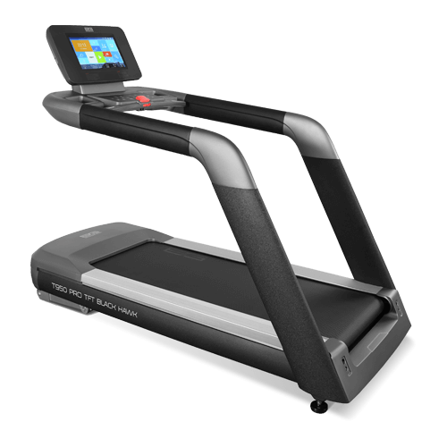 Беговая дорожка BRONZE GYM T950 PRO TFT BLACK HAWK — профессиональная модель для оснащения кардиозон и тренажерных залов. Подходит для ежедневных тренировок и эксплуатации в коммерческих фитнес‑пространствах.