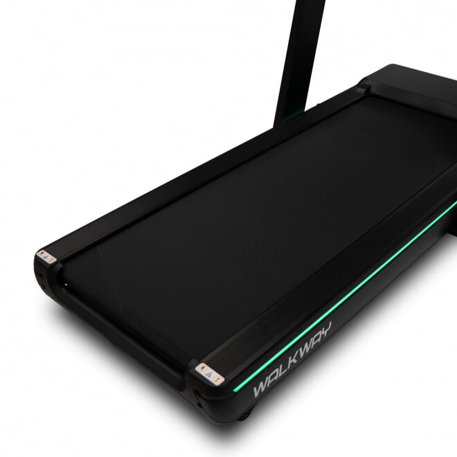 Также это отличный вариант для реабилитационной физиотерапии. Минимальная скорость движения полотна всего 1 км в час, широкие направляющие для ног по бокам и большие крупные поручни для надёжной опоры. Дизайн дополнил светодиодной подсветкой, которая не только создаёт приятный внешний вид, но и имеет практическое применение. Она горит зелёным светом, когда дорожка не работает, и красным, когда включена.