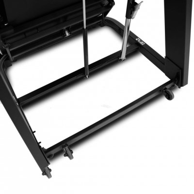 Первое, что нужно знать, это складной тренажёр. И в классе полноценного коммерческого оборудования такой, согласитесь, встречается нечасто. В сложенном состоянии, как можете видеть, конструкция весьма компактная. Такой вариант станет отличным выбором для уютной студии фитнеса, офисного спортзала, учебного центра, отеля, гостиницы, дома отдыха или санатория. А еще, например, больницы или реабилитационного центра.