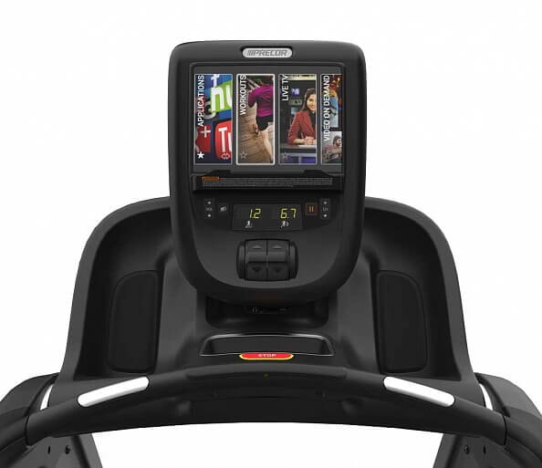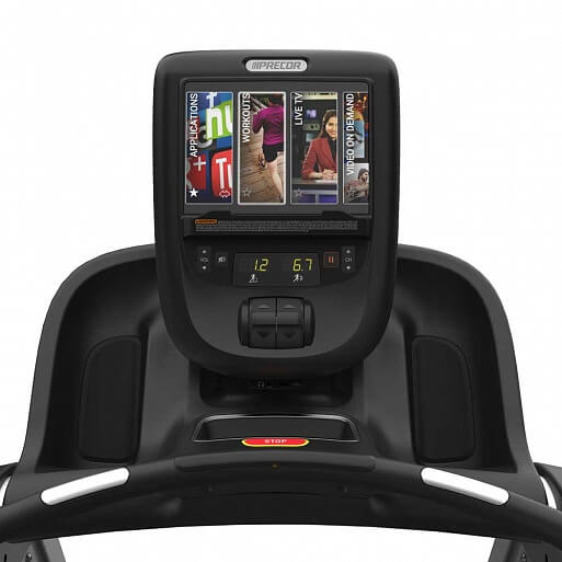 Беговая дорожка PRECOR TRM 865 серии Experience оснащена консолью P62 с сенсорным экраном, которая объединяет в себе современный дизайн и возможности сетевого фитнеса премиум-класса по умеренной цене.