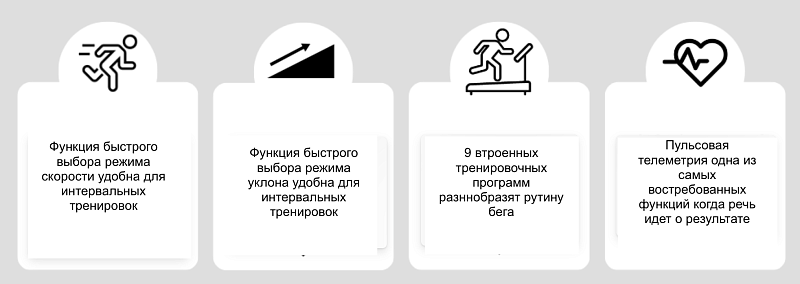 - Клавиши быстрого выбора скорости и угла наклона, а также разнообразные тренировочные программы обеспечивают легкость и удобство настройки тренировочного процесса