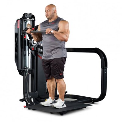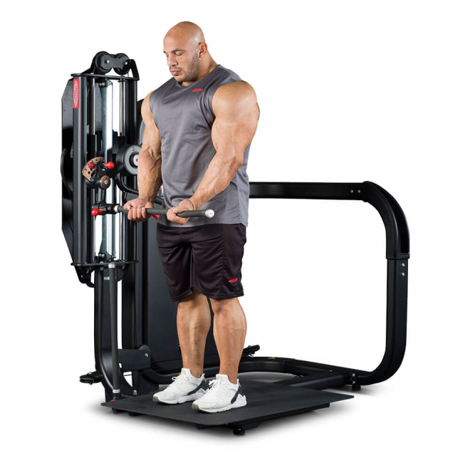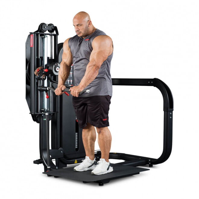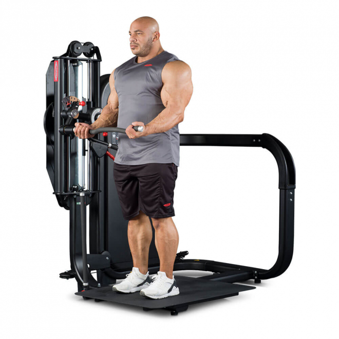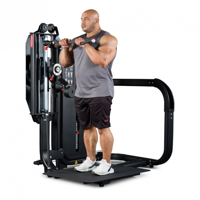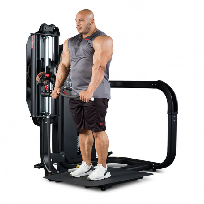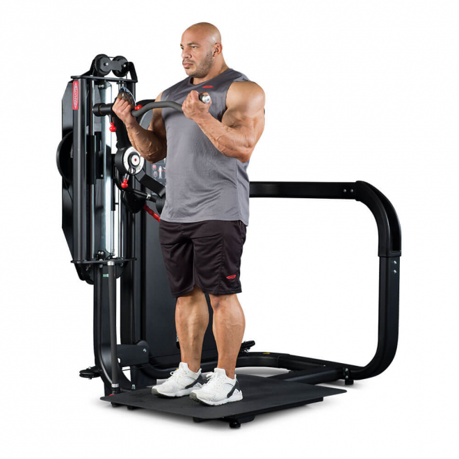 Standing Total Arms — это тренажер двойного назначения для полноценной тренировки рук, эффективно воспроизводящий сгибание рук для бицепсов и жимы вниз для трицепсов в положении стоя. Standing Total Arms незаменим при тренировке рук в суперсетах без необходимости смены оборудования или станции, как в случае со свободными весами или другим силовым комплектом.