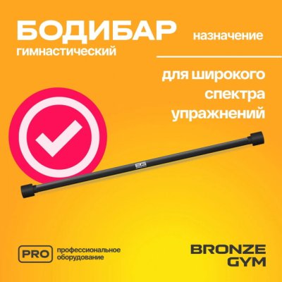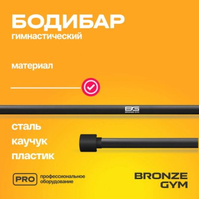 Бодибар от BRONZE GYM — это гимнастическая палка без дополнительных грузов, предназначенная для силовых упражнений. Такой универсальный спортивный снаряд помогает тренировать все группы мышц, имитирует гриф штанги и одинаково хорошо подходит для занятий в спортзале и дома. BG-FA-BDB7 имеет покрытие из искусственного каучука, приятное на ощупь, он не будет оставлять мозолей на ладонях и ссадин на спине и плечах. Специальная форма заглушек не позволит снарядам кататься по полу и пачкать покрытие. Длина снаряда составляет 120 см, диаметр 3 см. Вес бодибара 7 кг. Идеально подходит для функциональных тренировок, как индивидуальных, так и в группах. Используется в качестве отягощения более легкого, чем штанга.