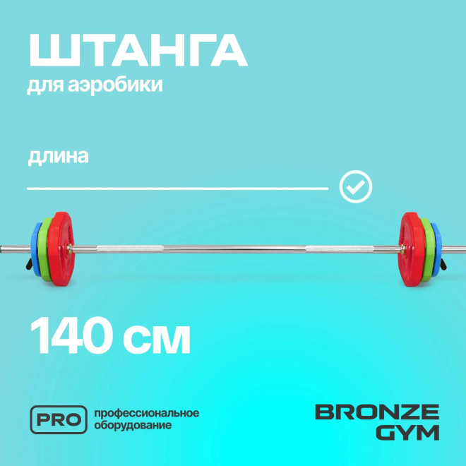 Штанга для аэробики от BRONZE GYM — это необходимый инвентарь для тренировок как дома, так и в зале. Стальной гриф имеет комфортный хват за счет рельефного нанесения. Обрезиненные диски не поцарапают пол и не гремят. Благодаря ручкам на дисках, их удобно брать и выполнять различные упражнения. В комплект входят весовые диски 2 х 1.25 кг, 2 х 2.5 кг, 2 х 5 кг и пара замков.