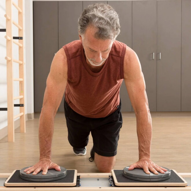 Диски добавляют нестабильность в тренировки, что усиливает проработку баланса, кора и суставов. Они крепятся к рабочей поверхности платформы CoreAlign и надёжно держатся на месте во время упражнений.