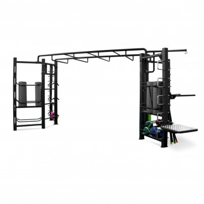 BRONZE GYM FL-01 - это уникальное решение для построения максимально насыщенных функциональных тренировок на ограниченной площади. Благодаря двум тренировочным зонам и большому количеству аксессуаров можно создать оригинальные динамичные программы по групповому и персональному тренингу.