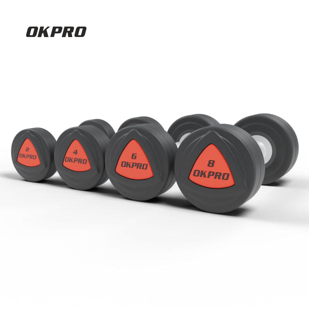 Гантели OKPRO из полиуретана разработаны для интенсивного ежедневного использования. Благодаря высококачественным материалам и тщательной обработке они обеспечивают долгий срок службы и профессиональные эксплуатационные характеристики для тренажерных залов и учебных центров.