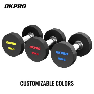 Гантели OKPRO используют классическую двенадцатигранную форму, которая имеет почти круговой вид и может в определенной степени удерживать гантели от качения на земле.