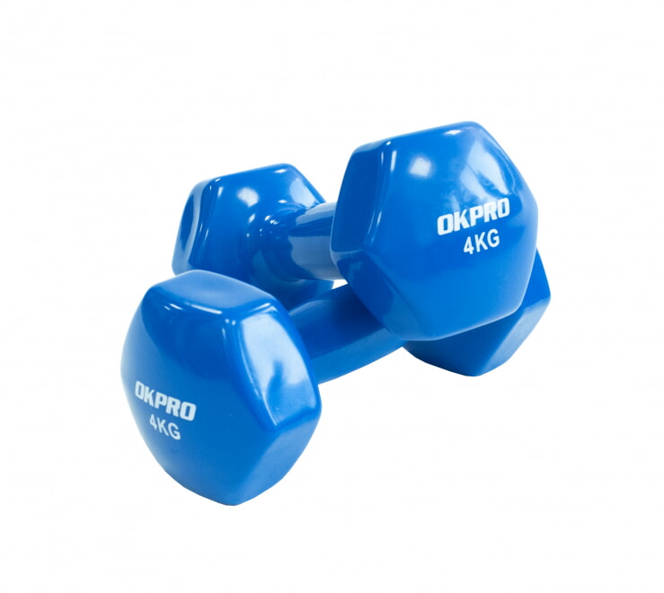 Гантель 4 кг в виниловой оболочке OKPRO для фитнес тренировок. Отлично подойдет для групповых программ и для домашнего тренинга.