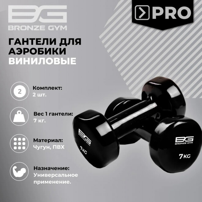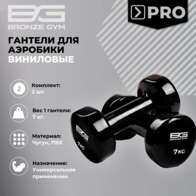 Гантели для аэробики виниловые BRONZE GYM FA-VD7 7 кг (пара) — тренажер коммерческого класса, разработанный для оснащения фитнес‑клубов и спортивных центров. Может использоваться для регулярных тренировок в условиях высокой нагрузки.