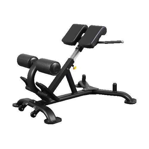 Профессиональные скамьи от немецкого бренда BRONZE GYM это отличное решение для любых фитнес клубов, которое добавит универсальности в каждую тренировку. BRONZE GYM BR-1010 - это гиперэкстензия коммерческого класса. Модель предназначена для выполнения упражнений на мышцы спины, пресс, заднюю поверхность бедра, ягодичные мышцы. Каркас оборудования выполнен из толстостенного профиля 50x100 мм полукруглого сечения толщиной 2,5 мм. Резиновые подпятники на ножках избавят напольное покрытие в зале от повреждений, а также сократят скольжение спортивного снаряда. На BR-1010 установлена широкая и мягкая парта с полиуретановым наполнителем и обивкой из искусственной кожи, а также валики. Для настройки гиперэкстензии под рост пользователя установлена возможность регулировки парты по длине. Платформа для ног покрыта антискользящей рифленой поверхностью. В передней части тренажера расположено два грифа для хранения дисков.