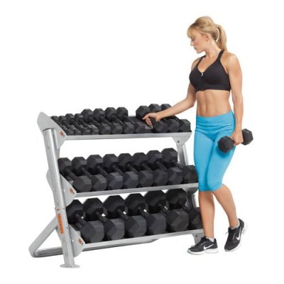 - Подходит для хранения классических обрезиненных гантелей или гантелей в уретане, гексагональных гантелей, а также гирь