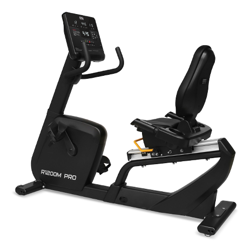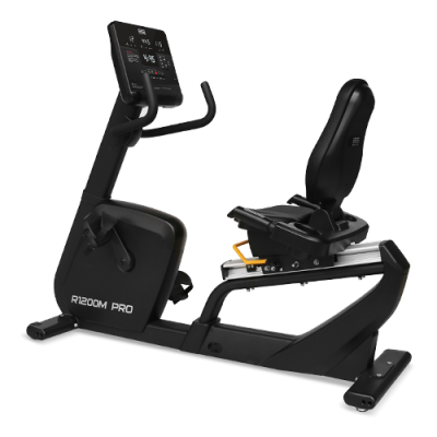 R1200M PRO идеально подойдет для тех, у кого есть проблемы со спиной. Сиденье со спинкой профессионального класса имеет возможность горизонтальной регулировки. Широкое и очень мягкое, выполненное в анатомической форме с гелевыми вставками. Направляющая рельса сиденья сделана из алюминиевого сплава. Рифленые самобалансирующиеся педали с прорезиненными многопозиционными ремешками обеспечивают надежное сцепление на любых скоростях. Велотренажер удобно перемещать благодаря двум транспортировочным роликам, а точное горизонтальное положение обеспечивают компенсаторы неровностей пола. Максимальный вес пользователя - 180 кг.