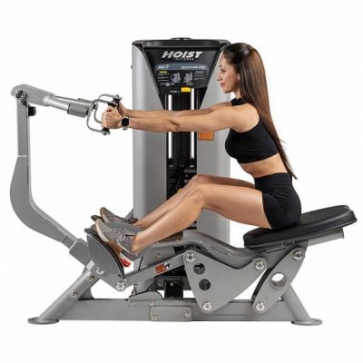 Тренажермодели RS-2203 от компании Hoist – это тренажер для выполнения гребной тяги в положении сидя.