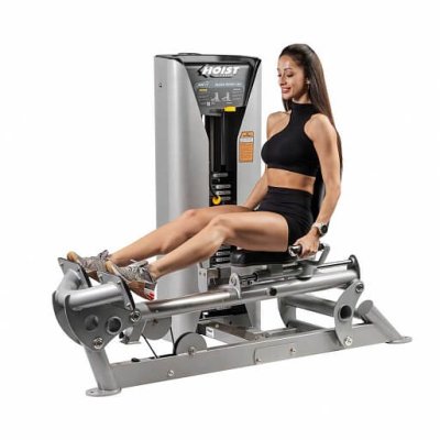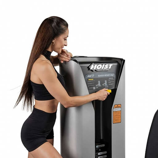 Коммерческий тренажер RS-2415, разработанный компанией Hoist, позволяет тренировать икроножные мышцы сидя.