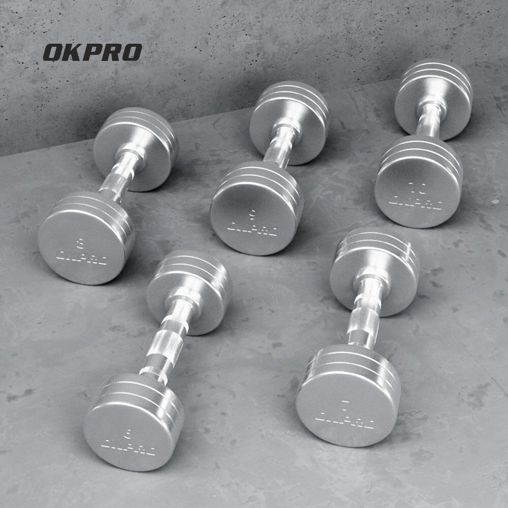 Хромированные гантели — это стальные гантели, покрытые декоративным хромовым слоем методом гальванизации, что обеспечивает блестящую, устойчивую к коррозии и легко очищаемую поверхность. Основное внимание уделяется внешнему виду и базовой устойчивости к коррозии.