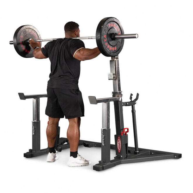 Panatta 1PWL102 — это модель 2 в 1, которая может быстро превращаться из исходной стойки для приседаний в жим лежа. Создана для профессионального пауэрлифтинга. Также подходит для тренировок с весами, включая растяжку на скамье и приседания. Это прочная и устойчивая конструкция. Соответствует нормам Международной Федерации Пауэрлифтинга (IPF).