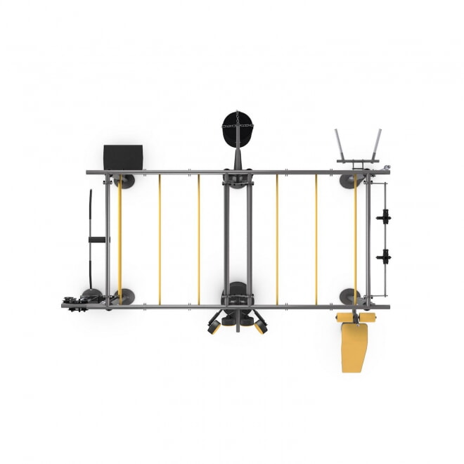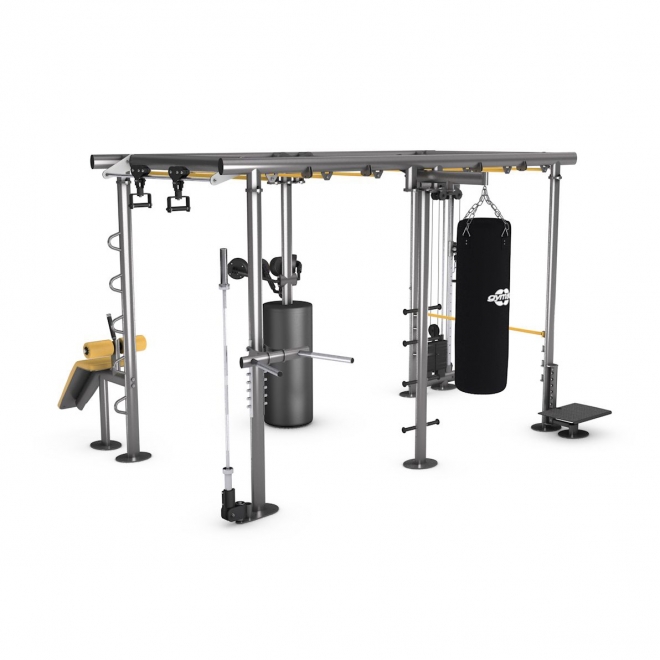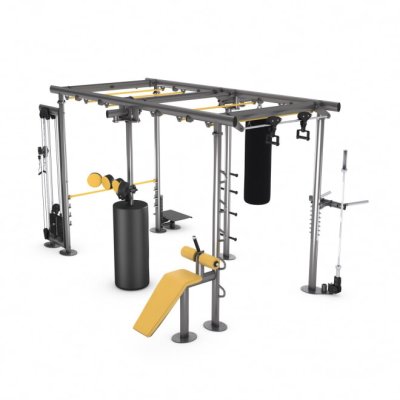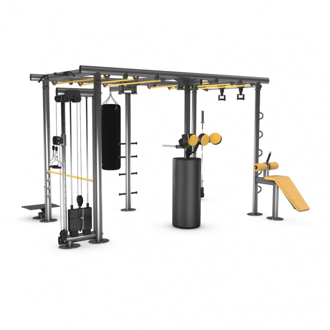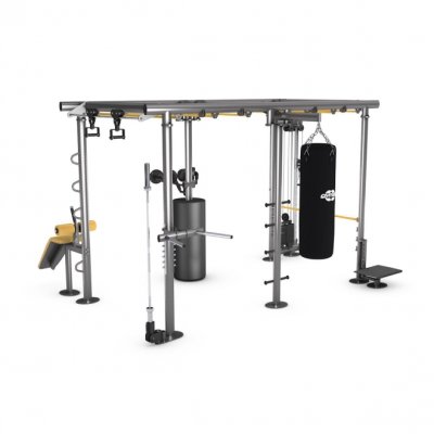 В Iron Qube L имеется более одиннадцати станций и 14 точек крепления для дополнительных тренировочных устройств. На площади всего 17 м? одновременно могут тренироваться до двенадцати человек. В комплект не входит груши и олимпийский гриф.