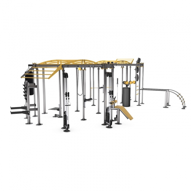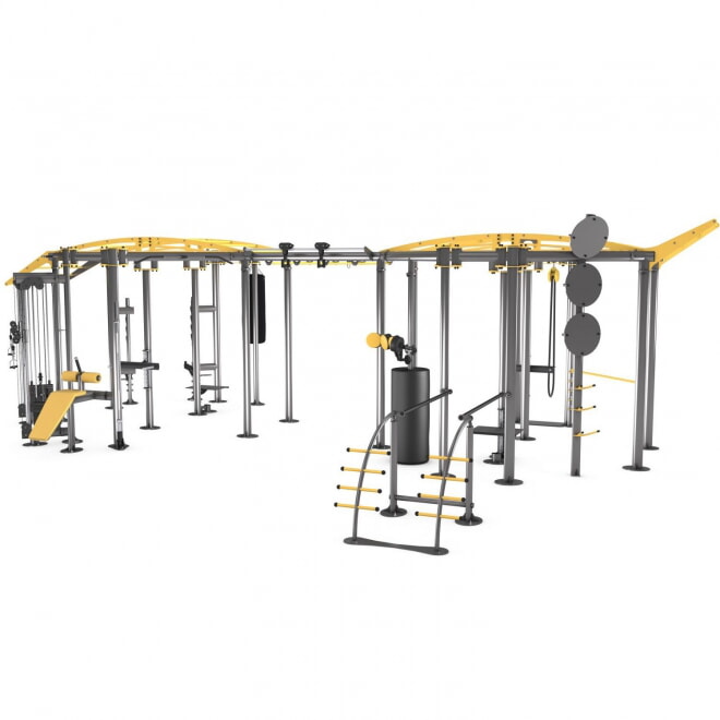 В Iron Qube XXL более 17 станций и 20 точек крепления для дополнительных тренировочных устройств и хранилище для различных аксессуаров. Iron Qube XXL с площадью 57 м? является крупнейшей тренировочной станцией в серии Qube, и в свою очередь, в ней могут разместиться 24 клиента. Олимпийский гриф и груша не включены в комплект.