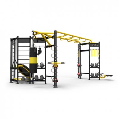 Комплекс из 3-х модулей в форме буквы 'L', состоит из: зоны растяжки, зоны бокса (без боксерского мешка) и зоны реакции, соединенных между собой посредством «рукохода» и S-образного соединения, включающий плио платформу, опору для отжиманий (брусья) и шарнирный крепеж для грифа.