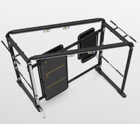 - Конструкция оснащена регулируемыми по горизонтали ручками.