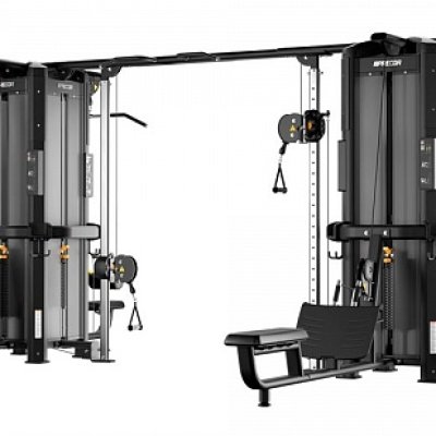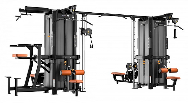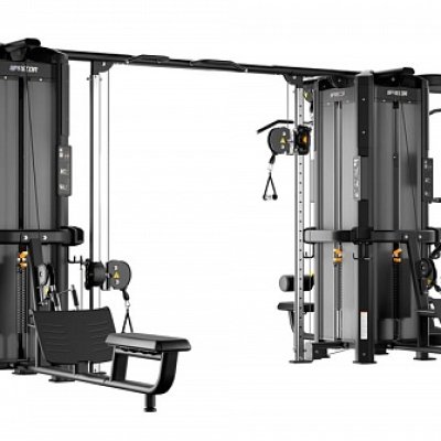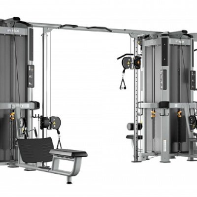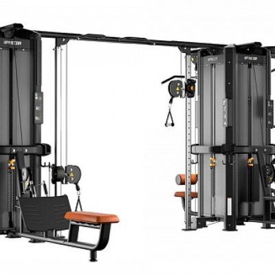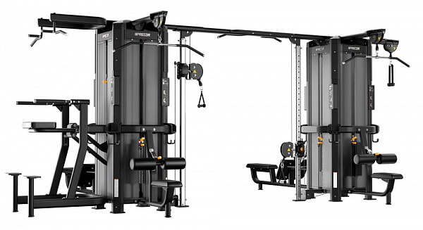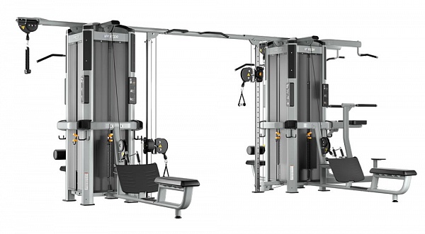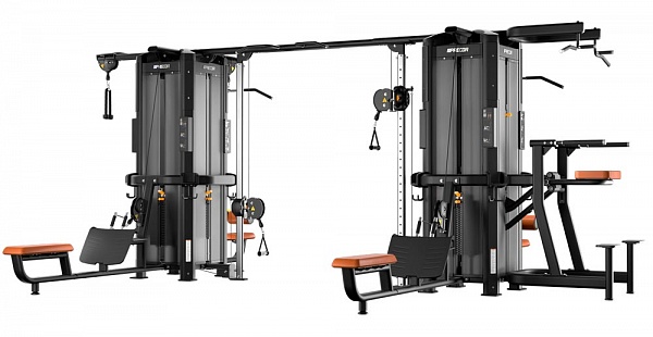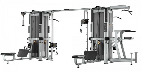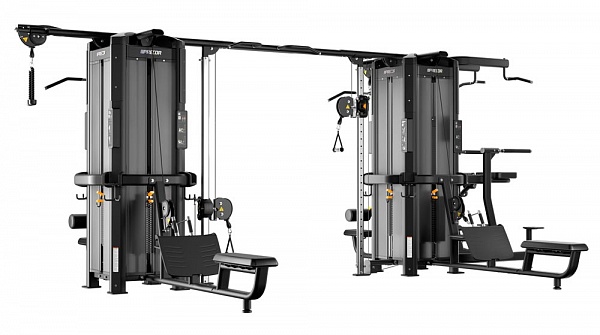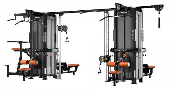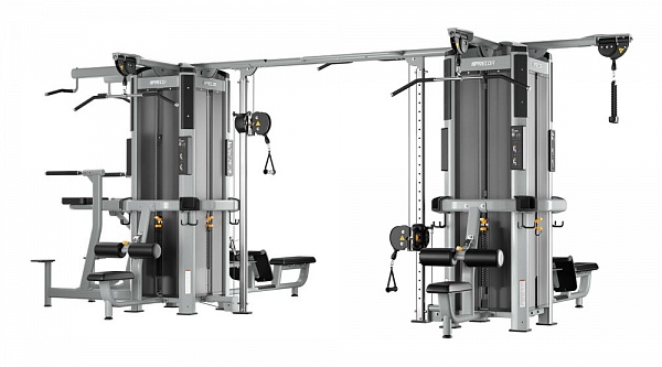 Рамы могут соединяться только через балку для перекрестной тяги, крепящуюся к колоннам для тяги. Таким образом, в состав мультистанции с двумя и более рамами должны входить от двух модулей колонн для тяги, обращенных друг к другу, образуя тренажер Crossover.