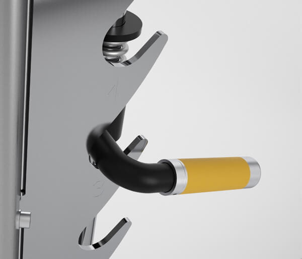 - Держатели для хранения дисков штанги оптимизированы для легкой загрузки и разгрузки на высоте, доступной для большинства пользователей.