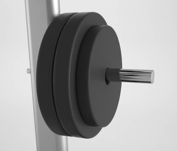 Оцинкованные держатели диаметром 2,54 см обеспечивают возможность быстрой загрузки и разгрузки дисков общим весом более 612 кг для тренировок с тяжелыми весами.