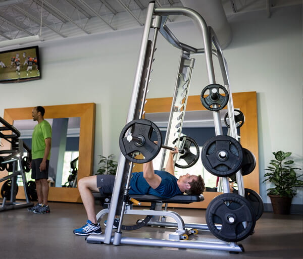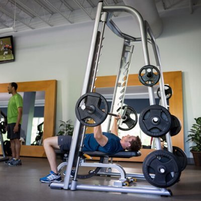 Машина Смита с ее открытой сквозной конструкцией — простой тренажер, на котором хочется заниматься. Он придется по душе клиентам c любыми возможностями.