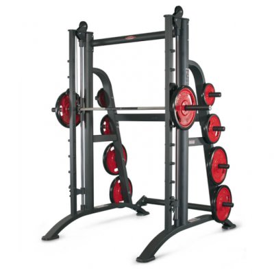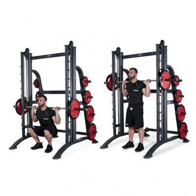 Смит-машина многофункциональный тренажер, который с успехом заменяет одновременно необходимые в любом зале стойки для приседаний и специализированные скамейки для жимов лежа, а также позволяет выполнить ряд иных специальных упражнений: приседания и выпады со штангой на плечах, тяги штанги в наклоне. Ряд этих упражнений требует наличия регулируемой скамейки, которая не входит в базовое исполнение HP 120. Тренажер в определенном смысле заменяет собой штангу, однако ход грифа по направляющим позволяет не контролировать его равновесие и сконцентрироваться на выполнении упражнения. Облегчение техники выполнения упражнения позволяет новичкам выполнять упражнения, которые в варианте со свободной штангой достаточно сложны. Опытные пользователи могут выполнять упражнения со таким смещением акцентов, которое не допускает использование свободной штанги. Универсализм смит-машины позволяет полноценно оборудовать небольшой зал, однако смит-машина (а часто две!) требуется в любом большом зале, даже если в нем есть прочее оборудование, специализированное для выполнения отдельных упражнений. Особенностью данного тренажера является наличие противовеса грузов, уравновешивающих вес грифа и его каретки, поэтому нагрузка при выполнении упражнений может быть сколь угодно малой, что позволяет комфортно работать на тренажере новичкам и женщинам, для которых даже вес грифа может оказаться слишком большим. При необходимости противовес может быть отцеплен. Поскольку данный тренажер рассчитан на опытных культуристов, наличие противовеса придает тренажеру дополнительный универсализм, то есть позволяет тренироваться и неопытным пользователям.
