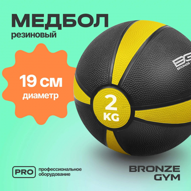 Медбол резиновый BRONZE GYM BG-FA-MB2 2 кг — тренажер коммерческого класса, разработанный для оснащения фитнес‑клубов и спортивных центров. Может использоваться для регулярных тренировок в условиях высокой нагрузки.