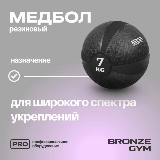 Медбол резиновый BRONZE GYM BG-FA-MB7 7 кг — тренажер профессионального сегмента, предназначенный для фитнес‑клубов и спортивных центров. Подходит для регулярных тренировок пользователей разного уровня подготовки.