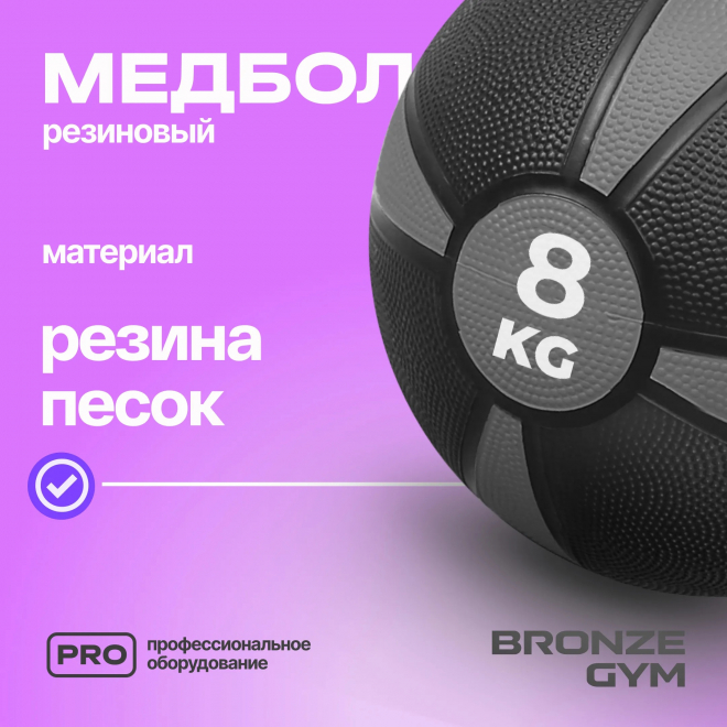Медбол резиновый BRONZE GYM BG-FA-MB8 8 кг — оборудование для профессиональных тренировок в спортивных клубах и тренажерных залах. Рассчитано на регулярную эксплуатацию и интенсивное использование.