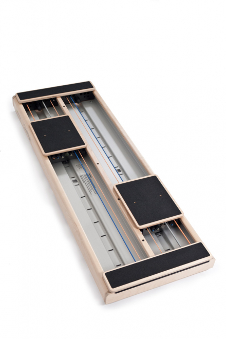 Тренажер состоит из деревянной рамы и лестницы (опция). Рама оснащена двумя каретками, к которым прикреплены эластичные амортизаторы. Амортизаторы создают плавное сопротивление (или содействие) движению.