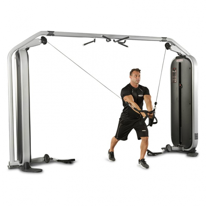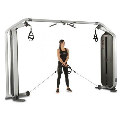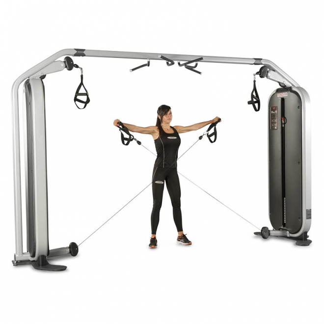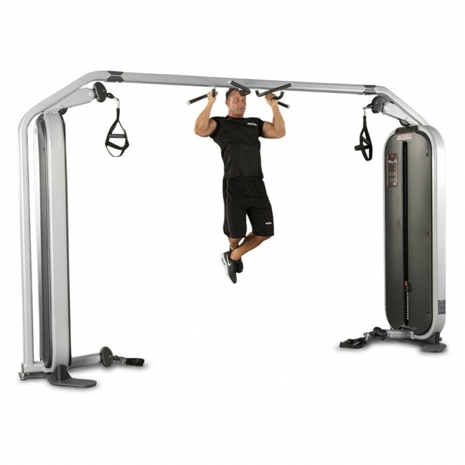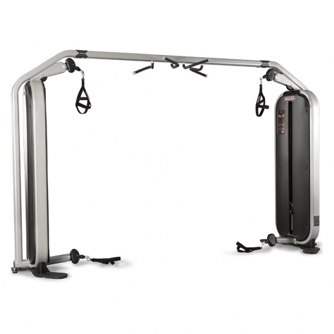 Cable Crossover 1MTH111 от Panatta, из серии Monolith, многофункциональный универсальный тренажер. Позволит поддерживать в форме все тело. С помощью данного тренажера можно проводить групповые занятия до трех участников. Базовая комплектация включает в себя 4 универсальные ручки. Для выбора веса предусмотрен магнитный штифт, а весовой стек защищает кожух из гофрированного ABS пластика. Тренажер оснащен функцией Technical Info, графической таблицей, на которой размещена ссылка на видеозапись с упражнениями, и QR-код. Прогрессивное увеличение нагрузки обладает шагом в 2,5 кг. Помимо того, что 1MTH111 является комбинированным тренажером и сочетает в себе 3 различных тренажера в одном, он еще и имеет турник для подтягиваний с мультихватом. Стандартный цвет обивки - красный, другие цвета доступны опционально.