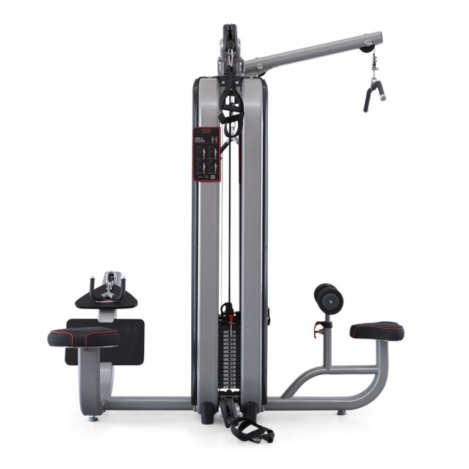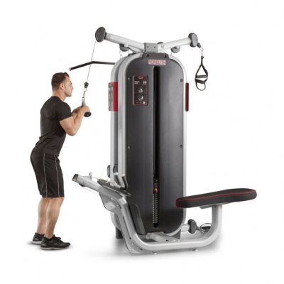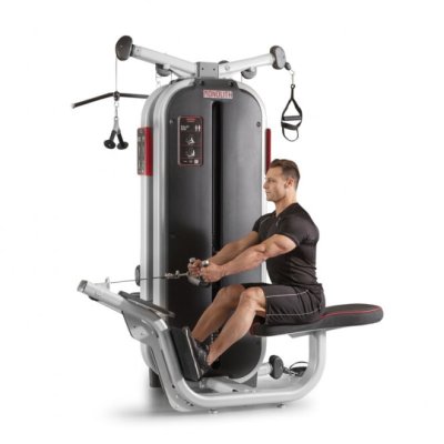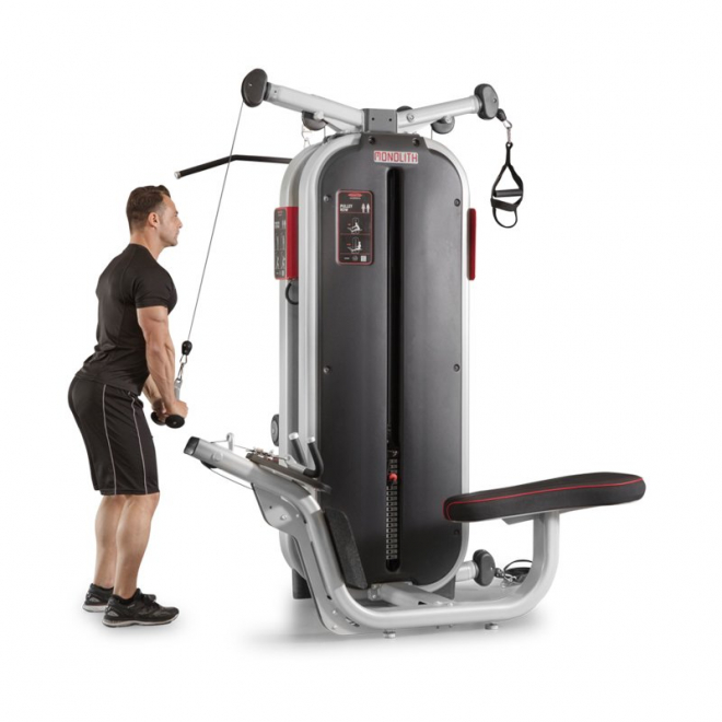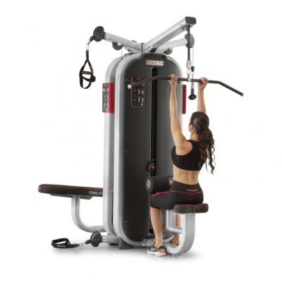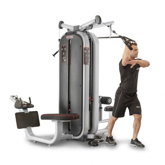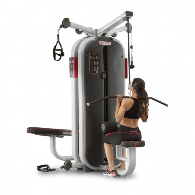 4-STATION MULTI GYM 1MTH112 от Panatta, из серии Monolith - широко функциональный тренажер. Возможны тренировки в группе до 4 человек. Базовая комплектация содержит 4 универсальныерукоятки, прямую рукоять для жима вниз и проработки трицепса, и такую же рукоять иной конфигурации. За выбор веса отвечает магнитный штифт, а весовой стек защищен кожухом из гофрированного ABS пластика. В 1MTH112 есть функция Technical Info, графическая таблица на которой изображен QR-код и ссылка на видео с инструкциями по упражнениям. Прогрессивное увеличение нагрузки предусмотрено с узких сторон, и имеет шаг в 2,5 кг. Этот тренажер универсален, ведь сочетает в себе сразу четыре различных тренажера. Функция 'Freemotion 360', отвечает за регулирование высоты флажка свободного движения. Стандартным цветом обивки является красный, другие цвета доступны опционально.
