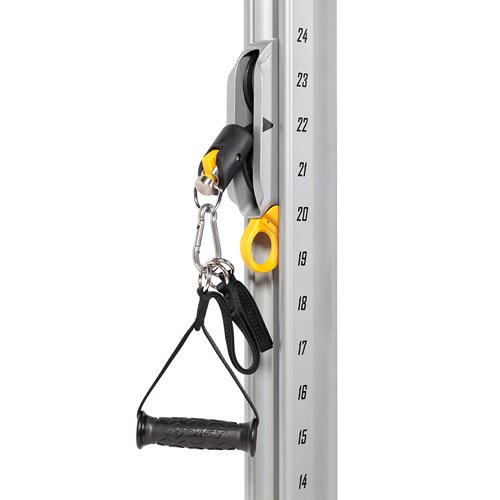 Система передачи нагрузки Split Weight Cabling™ обеспечивает сопротивление 50% (т.е. фактический вес = установленный вес/2), чтобы максимально увеличить диапазон движения тросов (289 см с учетом длины рукоятки).