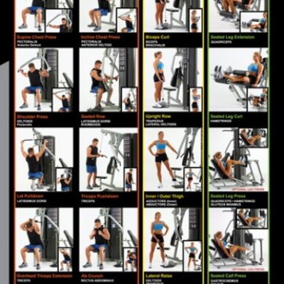 Включает в себя: упражнения на грудь, наклоны, жим от плеч, тяга сверху, гребля сидя, трицепс.