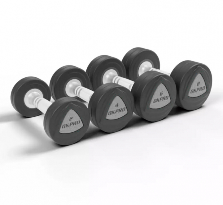 Набор полиуретановых гантелей от 12 до 30 кг (шаг 2 кг) OKPRO — модель коммерческого класса для оснащения фитнес‑клубов и тренировочных залов. Подходит для регулярных тренировок и повседневной эксплуатации.