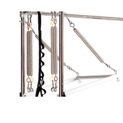 Есть 3 вида пружин для трапеции Balanced Body: стандартные (64 см), длинные пружины для ног (79 см) и пружины для перекладины-трапеции (64 см). Все пружины оснащены карабинами.