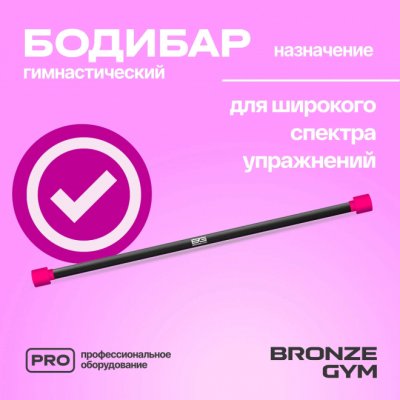 Бодибар от BRONZE GYM — это гимнастическая палка без дополнительных грузов, предназначенная для силовых упражнений. Такой универсальный спортивный снаряд помогает тренировать все группы мышц, имитирует гриф штанги и одинаково хорошо подходит для занятий в спортзале и дома. BG-FA-BDB1 имеет покрытие из искусственного каучука, приятное на ощупь, он не будет оставлять мозолей на ладонях и ссадин на спине и плечах. Специальная форма заглушек не позволит снарядам кататься по полу и пачкать покрытие. Длина снаряда составляет 120 см, диаметр 3 см. Вес бодибара 1 кг. Идеально подходит для функциональных тренировок, как индивидуальных, так и в группах. Используется в качестве отягощения более легкого, чем штанга.