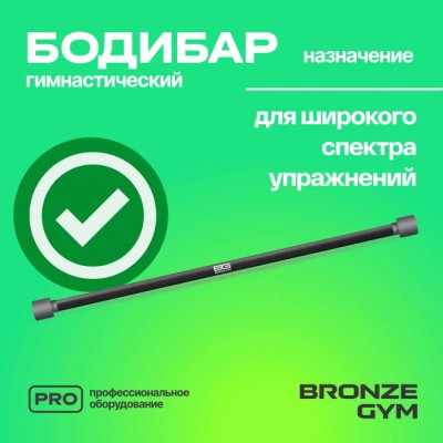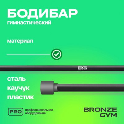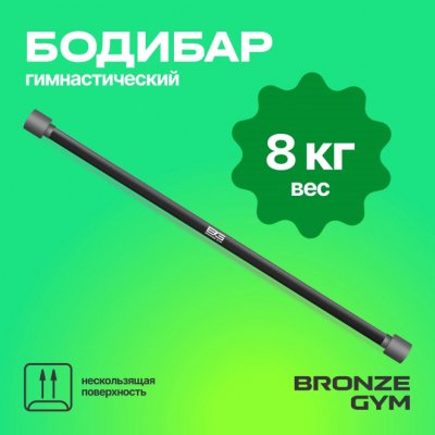 Бодибар от BRONZE GYM — это гимнастическая палка без дополнительных грузов, предназначенная для силовых упражнений. Такой универсальный спортивный снаряд помогает тренировать все группы мышц, имитирует гриф штанги и одинаково хорошо подходит для занятий в спортзале и дома. BG-FA-BDB8 имеет покрытие из искусственного каучука, приятное на ощупь, он не будет оставлять мозолей на ладонях и ссадин на спине и плечах. Специальная форма заглушек не позволит снарядам кататься по полу и пачкать покрытие. Длина снаряда составляет 120 см, диаметр 3 см. Вес бодибара 8 кг. Идеально подходит для функциональных тренировок, как индивидуальных, так и в группах. Используется в качестве отягощения более легкого, чем штанга.