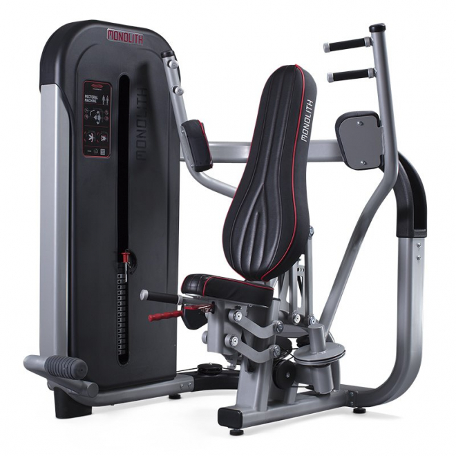 Pectoral Machine 1MTH035, превосходный тренажер для тренировки грудных мышц от Panatta, из серии Monolith. Выбор веса производится с помощью магнитного штифта. Тренажер оснащен функцией Technical Info, графической таблицей, на которой размещена ссылка на видеозапись с упражнениями, и QR-код. Прогрессивное увеличение нагрузки имеет шаг 2,5 кг. 1MTH035 оснащен газлифтами для плавной регулировки высоты сидения и спинки. Естественное распределение нагрузки обеспечивает эксцентрик. Весовой стек защищен специальным кожухом из гофрированного ABS пластика. Есть встроенная подставка для различных предметов. Стандартный цвет обивки - красный, другие цвета доступны опционально.