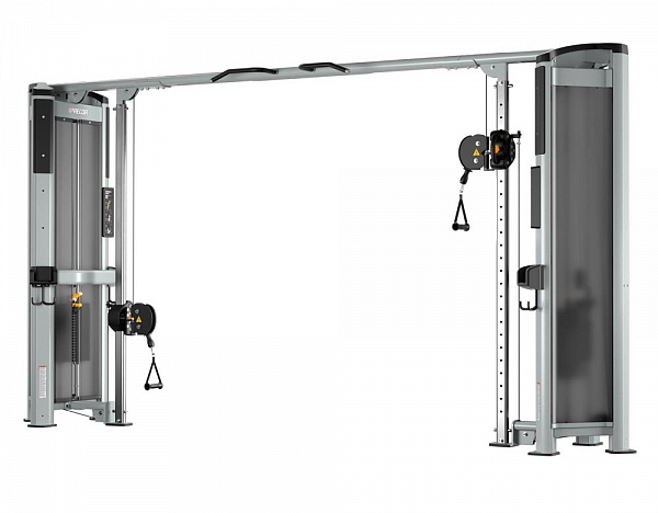 Рамы могут соединяться только через балку для перекрестной тяги, крепящуюся к колоннам для тяги. Таким образом, в состав мультистанции с двумя и более рамами должны входить от двух модулей колонн для тяги, обращенных друг к другу, образуя тренажер Crossover.