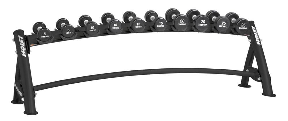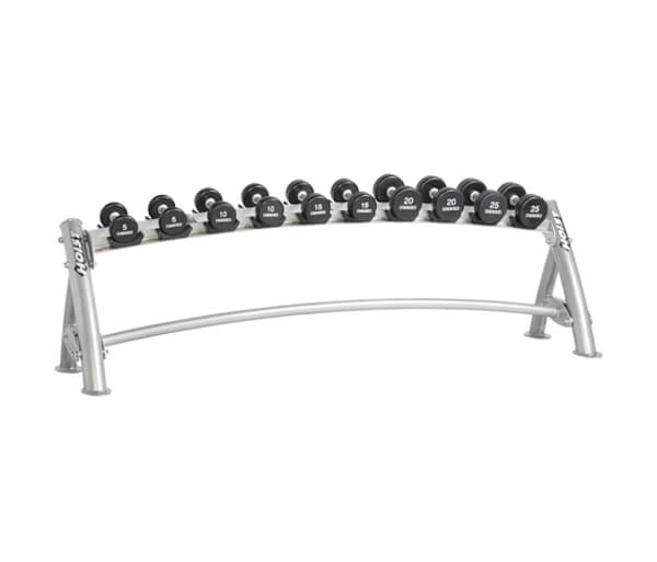 Подставка для гантелей CF-3461-1 компании Hoist имеет один ярус и рассчитана на пять пар гантель с максимальной нагрузкой 635 кг.