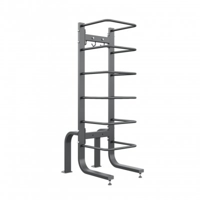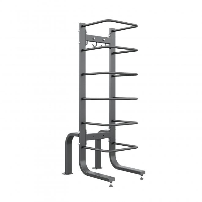 Органайзер FOREMAN FY-3051 – это функциональное решение для размещения балансировочных платформ BOSU. На одной стойке можно хранить до шести платформ. На задней панели предусмотрены крючки для удобного хранения амортизаторов.