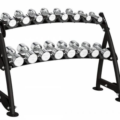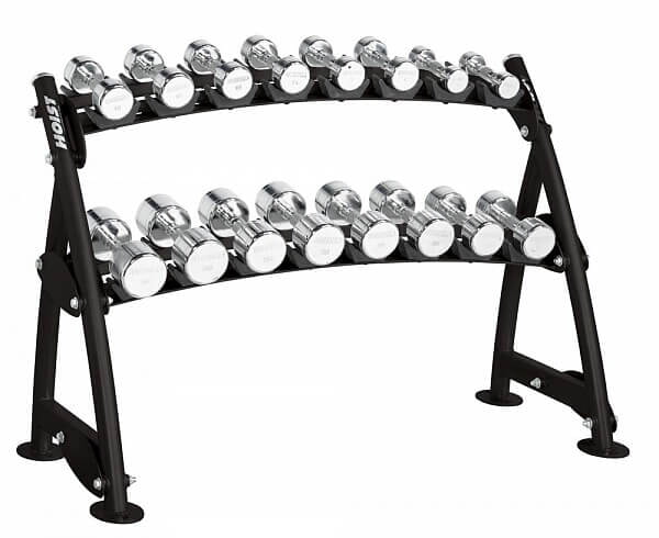 Двухъярусная подставка CF-3462-2 от компании Hoist служит для хранения хромированных гантелей. На каждый из ярусов приходится максимальная нагрузка в 227 кг.