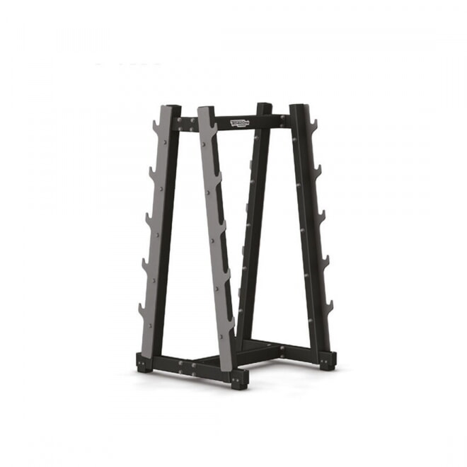 Эта стойка, вмещающая до 10 штанг и предусматривающая доступ с обеих сторон, - идеальный вариант для поддержания порядка на больших тренировочных площадках.